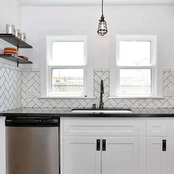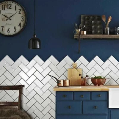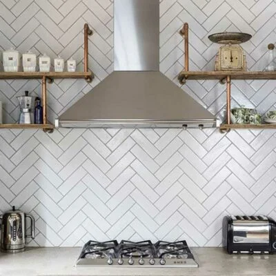 Gạch Ốp Tường Bếp Xương Cá kiểu dáng độc đáo dễ lau chùi.